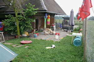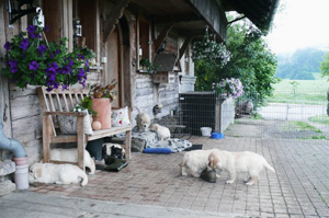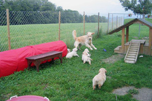 Die Welpen geniessen den grossen abwechslungsreichen Auslauf mit direktem Zugang zum Haus. | |