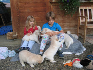 Their future home is very carefully selected; I do not give them away if they are to live in a kennel, for the Golden relates well to people and likes to be around them. A puppy playgroup and afterwards a training course for young dogs are a must and a great help for first-time owners. There are often questions and one gets to know a lot of nice people to share experiences with.