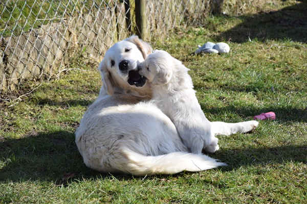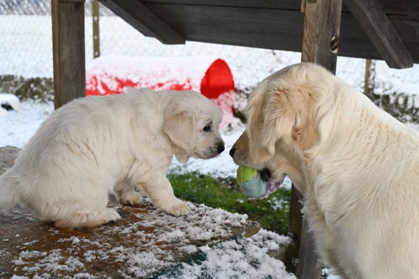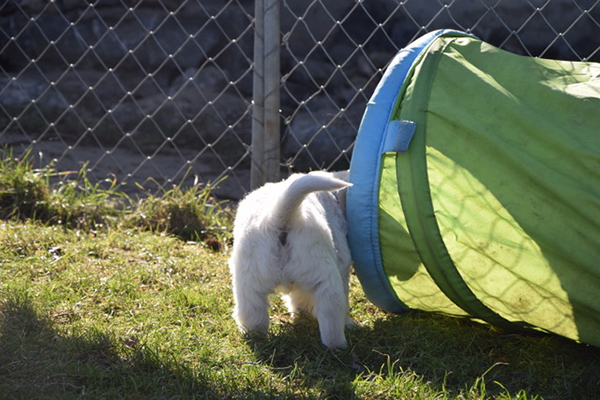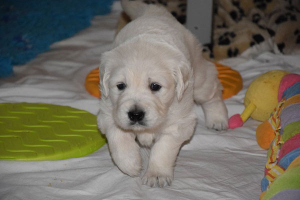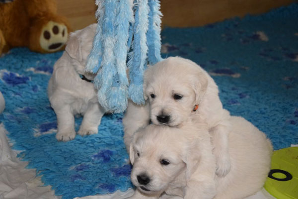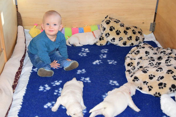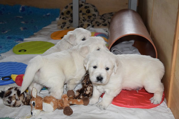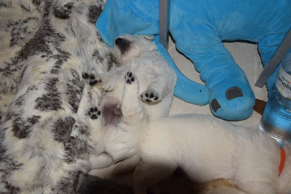 Lyn’s puppies are developing really well. They are playful, intrepid and just funny. Tomorrow the outdoor enclosure is going to take place, because at 4 weeks the interior is slowly getting boring.