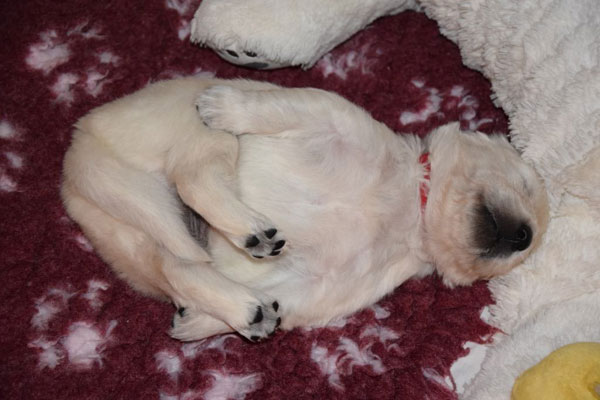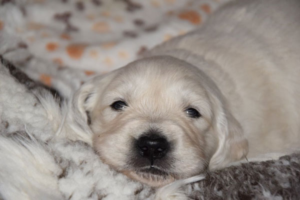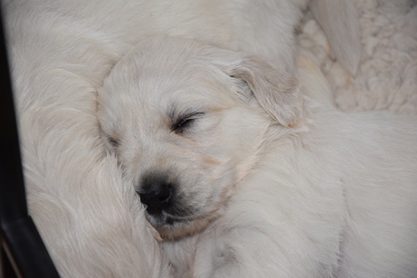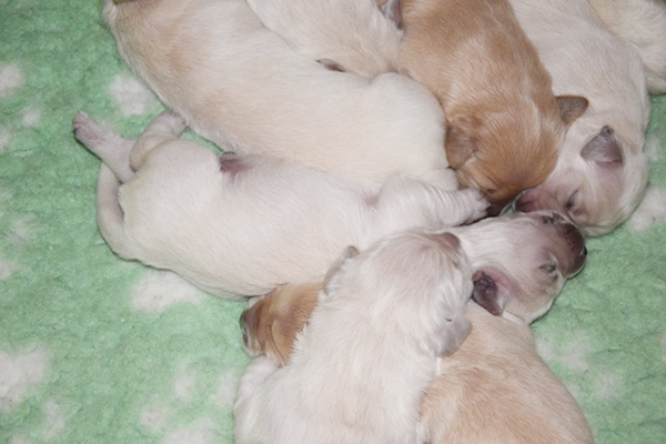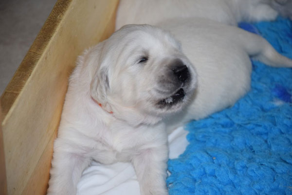 Lyn x Dancers puppies develop very well. In the litterbox is still on tap: to drink, to sleep and to grow... They're on average already 1.2 kg.